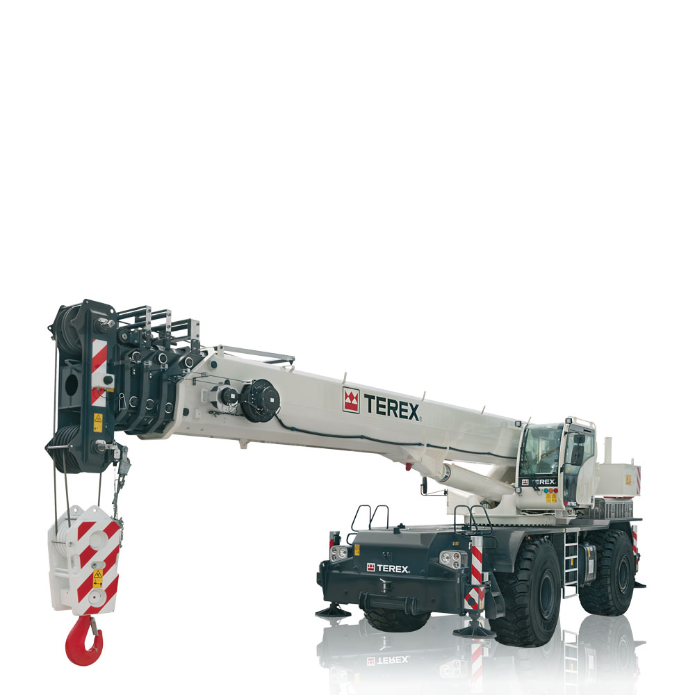 O novo TRT 80US é um guindaste rough terrain de 80 USt com lança de cinco seções de 138 ft e três modos telescópicos. Também conta com o novo sistema operacional TEOS da Terex.