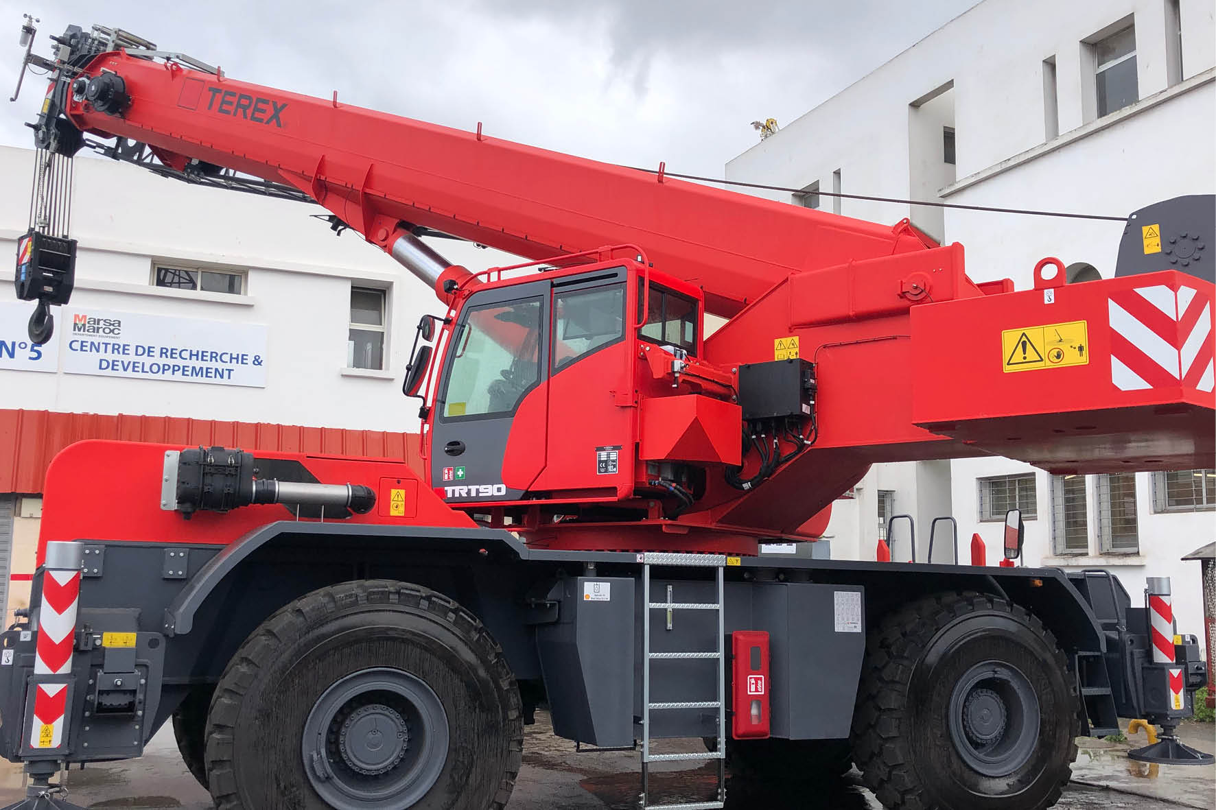 O novo modelo rough terrain TRT 90 da Terex é um guindaste com capacidade máxima de 90 t e lança principal com 47.0 m de comprimento. O modelo apresenta o novo sistema operacional TEOS da