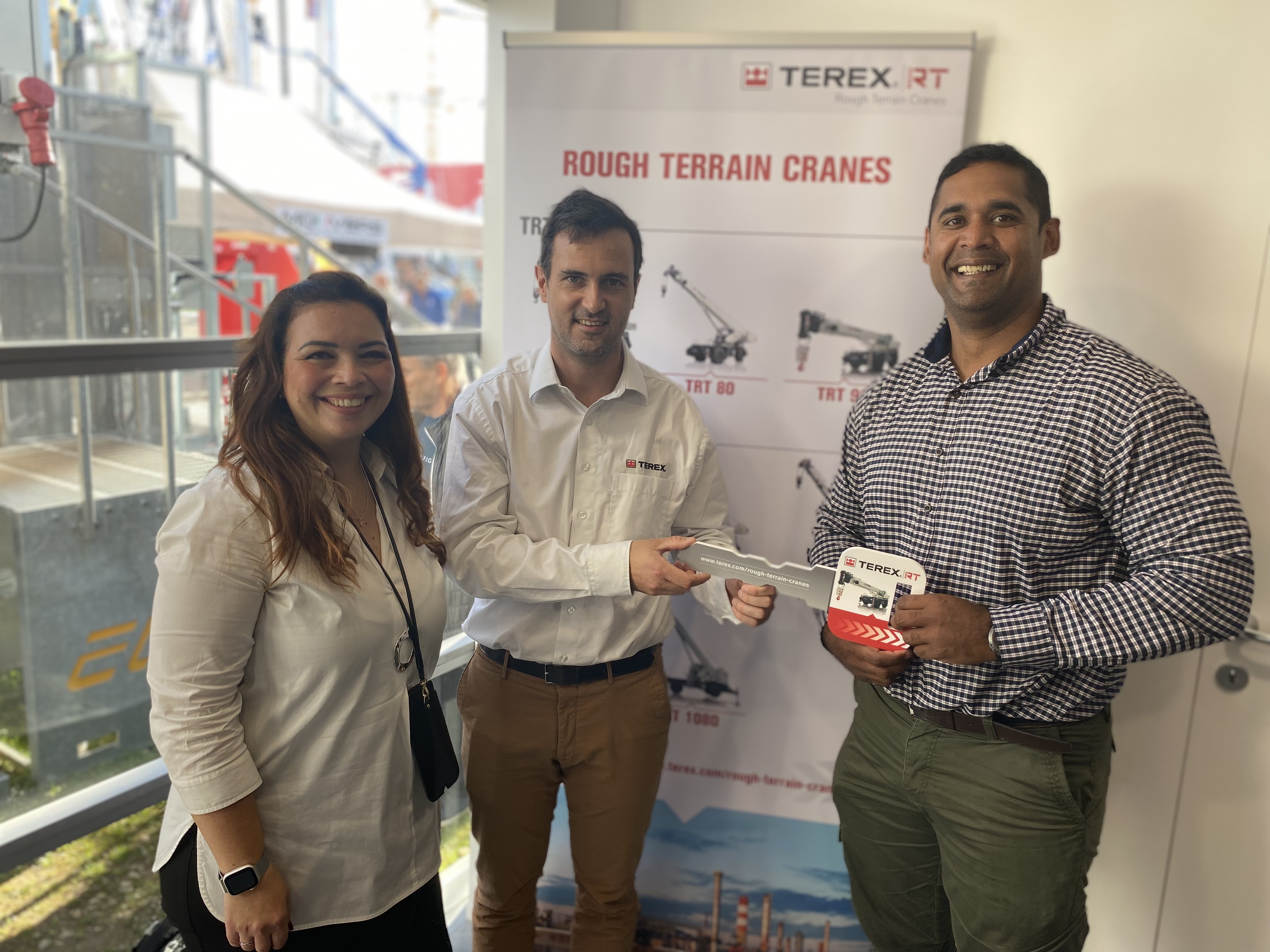 Pictured (Stefania D’Apoli - Senior Sales Support Manager RT cranes; Guillaume Bertrand – Sales Manager RT Cranes; Wayne McCullagh - BRS Sales Director.)