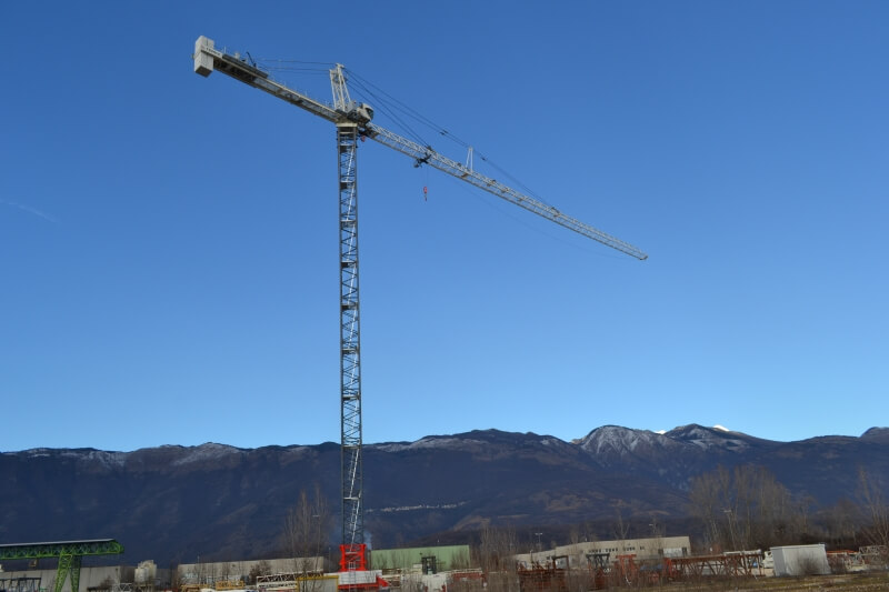 The SK 575-32 hammerhead tower crane has a maximum capacity of 32 t (35.3 USt) and a jib tip capacity of 4.1 t (4.5 USt).